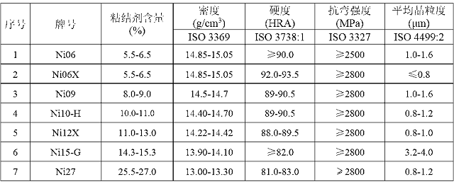 備注:粘結(jié)劑主要是鈷、鎳、鉻、鎳、碳化鉭/鈮、碳化鈦
