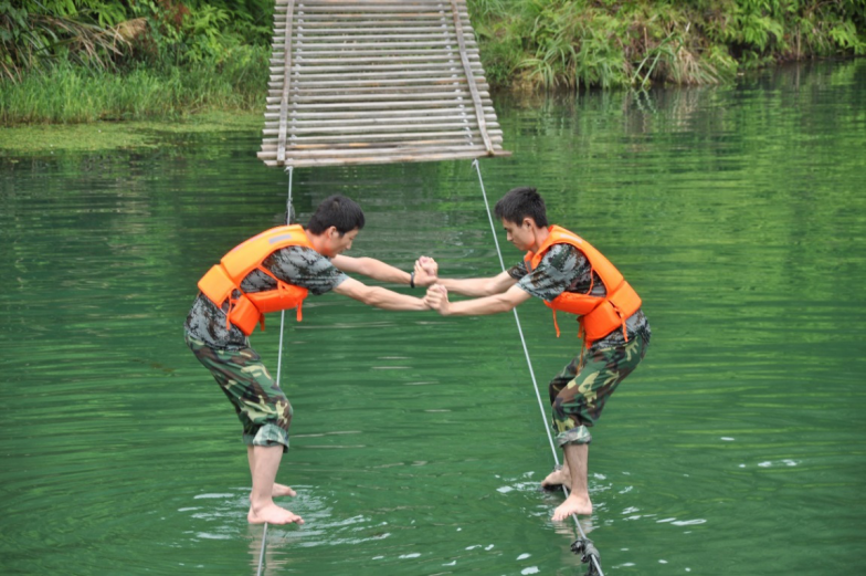 要講到刺激,要說(shuō)的就是“雙人走鋼絲”了,在湖中設(shè)置兩根鋼絲,兩個(gè)團(tuán)隊(duì)成員互相攙扶、平衡、配合水中走鋼絲,稍不留意就有落水的風(fēng)險(xiǎn)。既考驗(yàn)了身體的平衡與柔韌性,更重要的是要有大無(wú)畏的精神和勇氣去挑戰(zhàn),展現(xiàn)一個(gè)全新的自己。