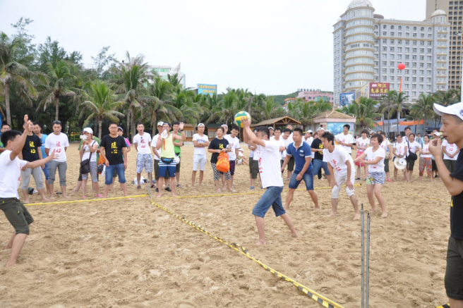 我們?cè)邳S金海岸舉行了沙灘排球、拔河、兩人雙足等眾多有利于團(tuán)建的沙灘娛樂活動(dòng)。看看我們的沙灘排球誰更厲害,首先姿勢要擺對(duì),聽我口哨準(zhǔn)備發(fā)球啦!啦啦隊(duì)們?yōu)槲覀兊木时荣惡炔剩?/span>